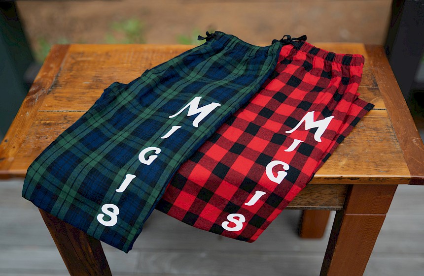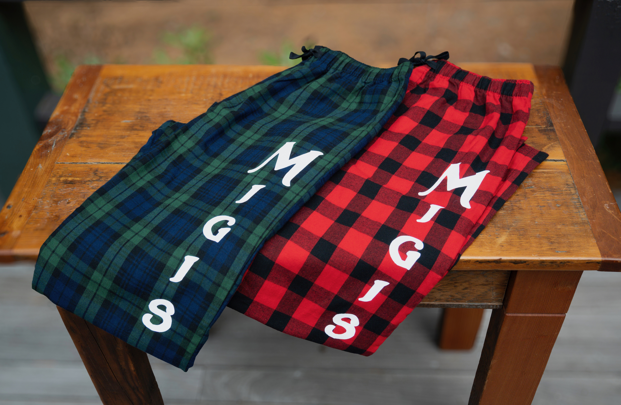 100% cotton flannel plaid with drawstring, sizes Sm-2XL
