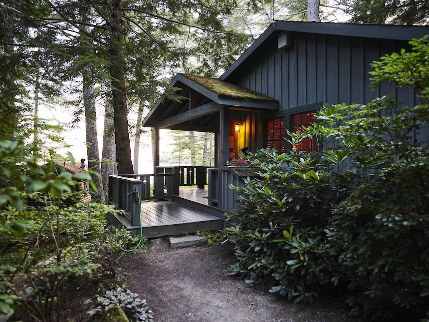 Stay in one of our Main Lodge’s eight spacious rooms or in a private cottage. You’ll enjoy your own porch with views of the lake, handsome appointments in every room, fieldstone fireplaces, contemporary bath appointments, fresh flowers, and housekeeping service, including fresh ice and firewood delivered by our cabin stewards.
