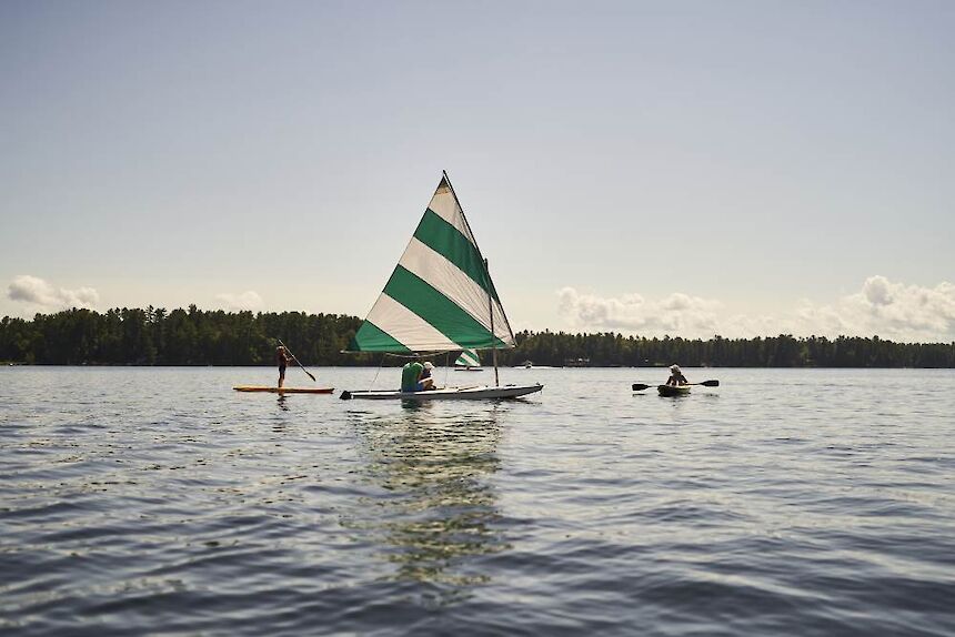 No Migis experience is complete without time spent exploring Sebago Lake in a wide selection of watercraft. We offer a variety of boating activities at Migis Lodge, ranging from sailing aboard a classic Sunfish sailboat, to paddleboarding, canoeing, kayaking, motorboating, and leisurely lake cruises. When you want to explore a bit further out on the lake, we have a variety of powerboats available for rent, ranging from 14-foot Lunds equipped with 15 horsepower engines to a performance powerboat and comfortable pontoon boat, perfect for larger families. Call us to reserve the larger powerboats for your upcoming stay. The smaller boats are available on a first-come, first-served basis.