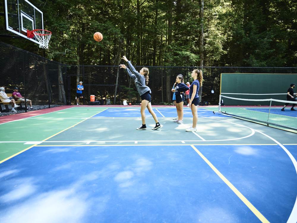 Practice your free throws and fancy footwork surrounded by the Migis pines at our fresh air basketball court. Sharing space with those crazy pickleball people is all part of the fun! We have balls and you pros are welcome to BYO.
