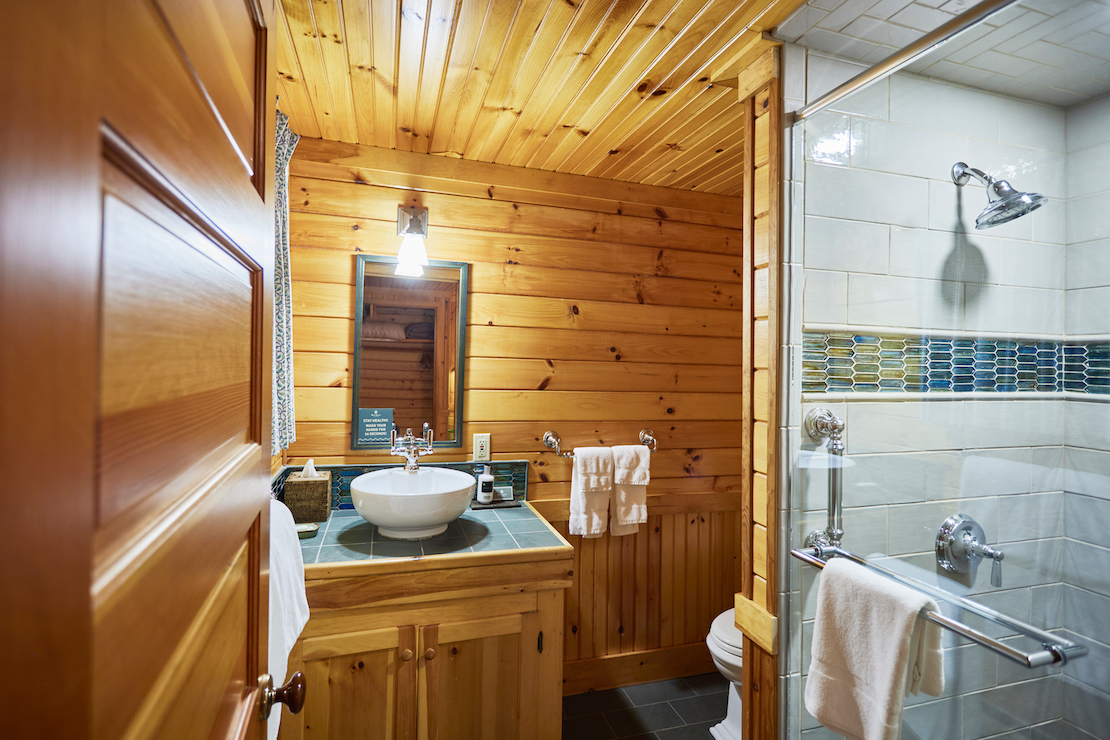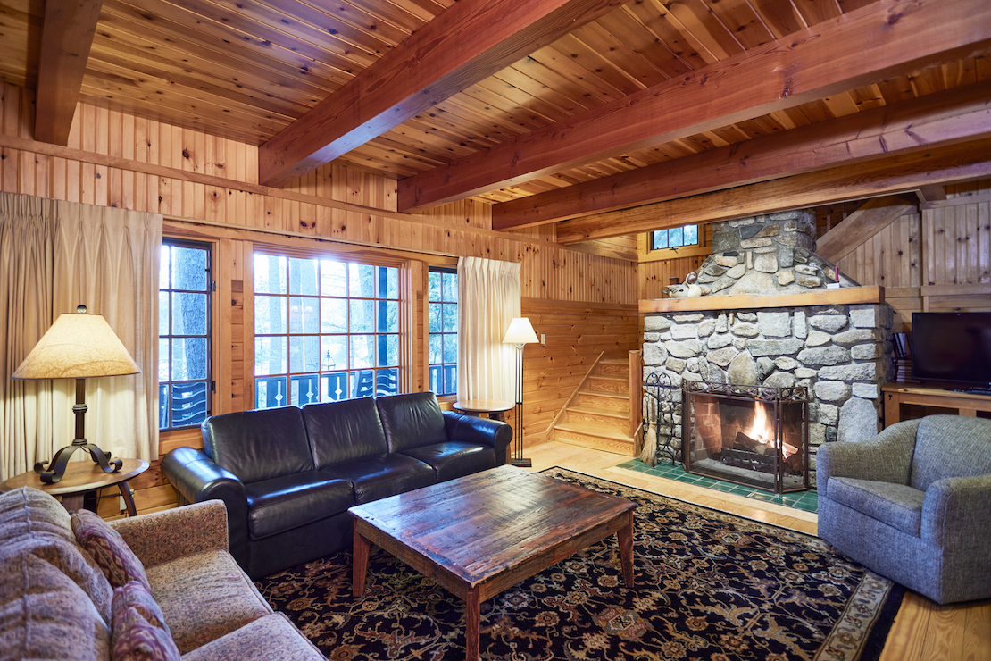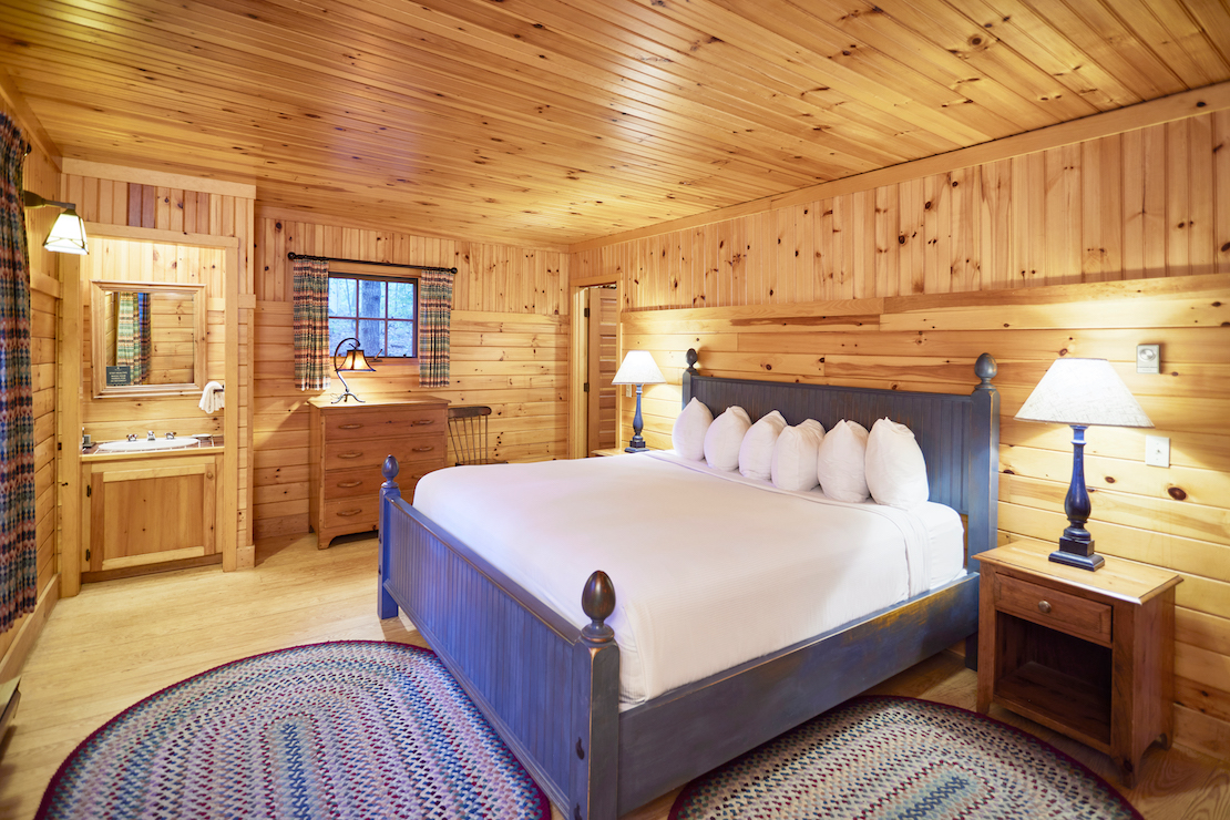 Whippoorwill has a long front porch with rockers and lovely lake views. The living room has a fieldstone fireplace, flat screen TV, and wet bar with undercounter refrigerator. There are two first floor bedrooms, one with king bed and en-suite bathroom with tub/shower combination, and the other has a king bed or twins. The adjacent hall bath has a tub/shower combination. Upstairs, the primary bedroom has a king bed, private covered balcony overlooking the lake and full bath with dual sinks and tub/shower combination. The second upstairs bedroom can be a king bed or twins and has an en-suite bathroom with walk-in shower. There are 10 steps to the front porch.