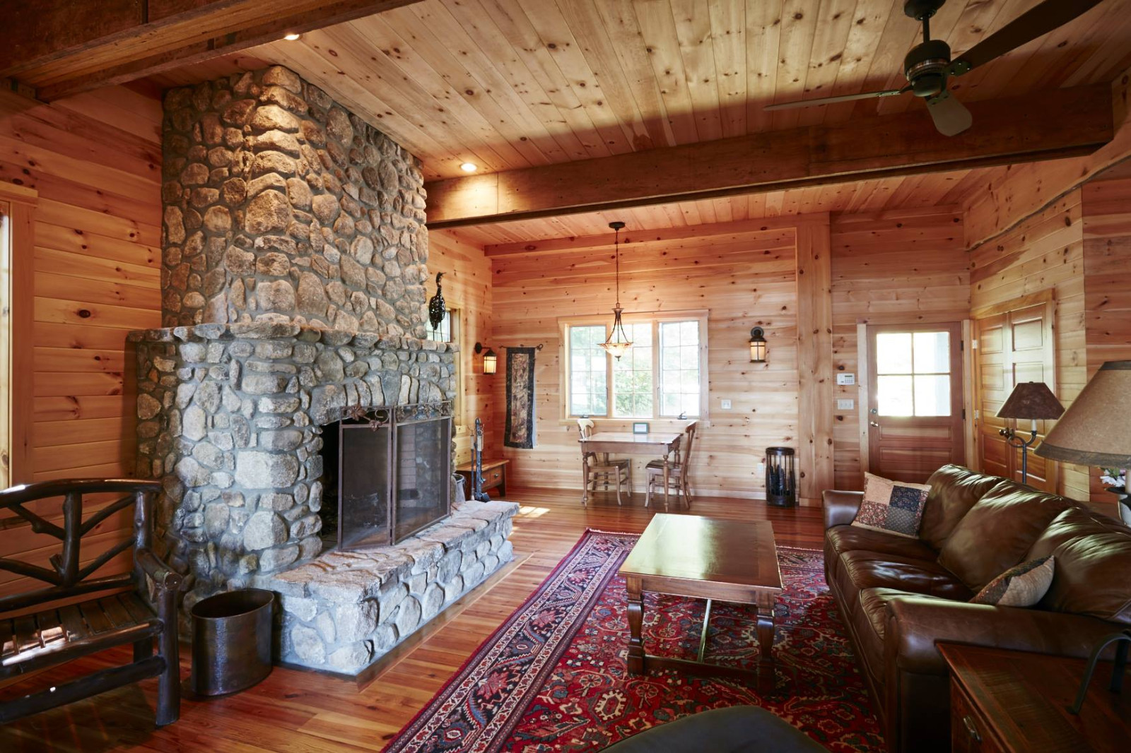 Tall Pines is a three bedroom, three and a half bath home with four fireplaces. The great room has a cathedral ceiling, flat screen TV, dining room seating for 10, and fully equipped gourmet kitchen. There is a ½ bath on the first floor, a screened porch, and a king bedroom with full bath. Upstairs are two bedrooms, each with private balcony and bath. There is an outside fireplace, private beach, dock with canoe and kayak and was featured as “Home of the Month” in Yankee Magazine.
