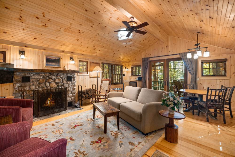 Our Two & Three Bedroom Cottages are perfect for families and groups of friends. Featuring multiple bathrooms, spacious living spaces with fieldstone fireplaces, and porches of various styles. 4 adult minimum.