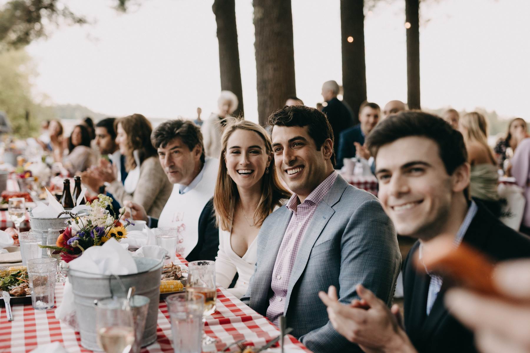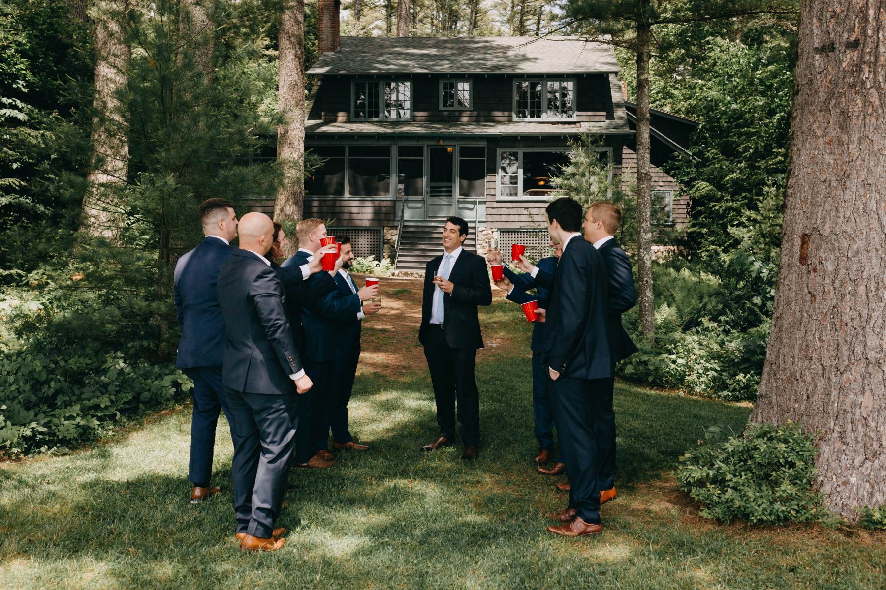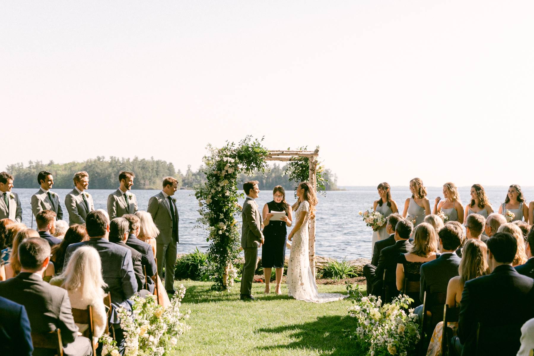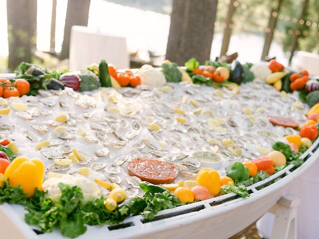 Migis Lodge is a magical location for a wedding and reception... imagine the wedding party arriving at their ceremony on our classic 1947 Chris Craft, and exchanging vows under the pines with Sebago Lake and Maine's Western Mountains serving as a stunning backdrop. After the ceremony, the couple and guests will enjoy cocktails, dinner and dancing in our lakeside lodge, and perhaps finish the evening around a bonfire on our front terrace.